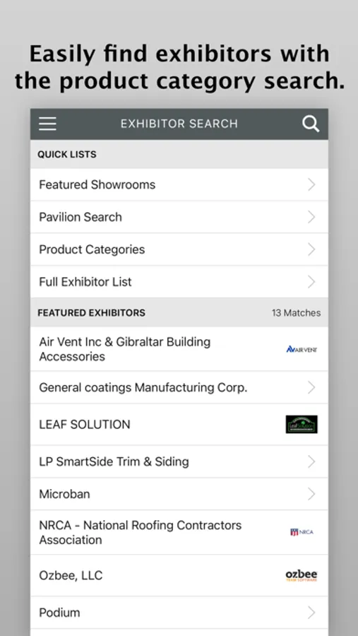 • Exhibitor Directory – Search for manufacturers and suppliers