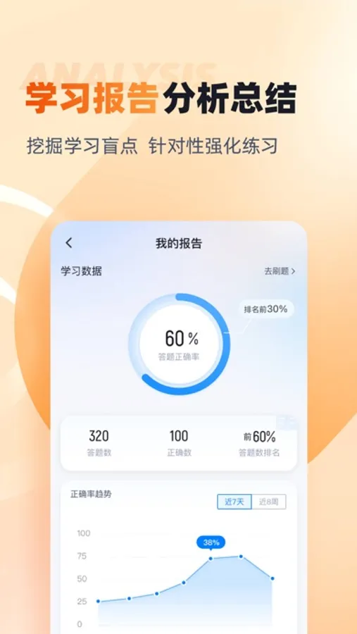 成人高考高起点题库内含考点练习,全国通用卷以及地区卷模拟练习,以及按照固定考试比重的随机式的抽题的真题考场,成绩单实时记录考试数据,一点一滴的反馈考生近期学习状态以及自我正确率的提升,大大的给予考生通过考试的信心。