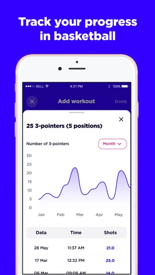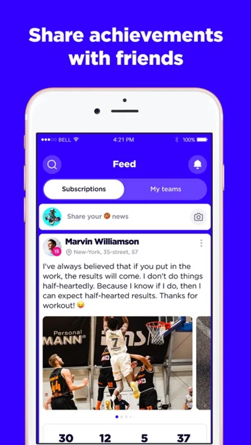 Get access to a community where you can share results with your teammates, develop skills, find a basketball coach to start or continue professional education, access training plans created by professional coaches, track progress, and support others.