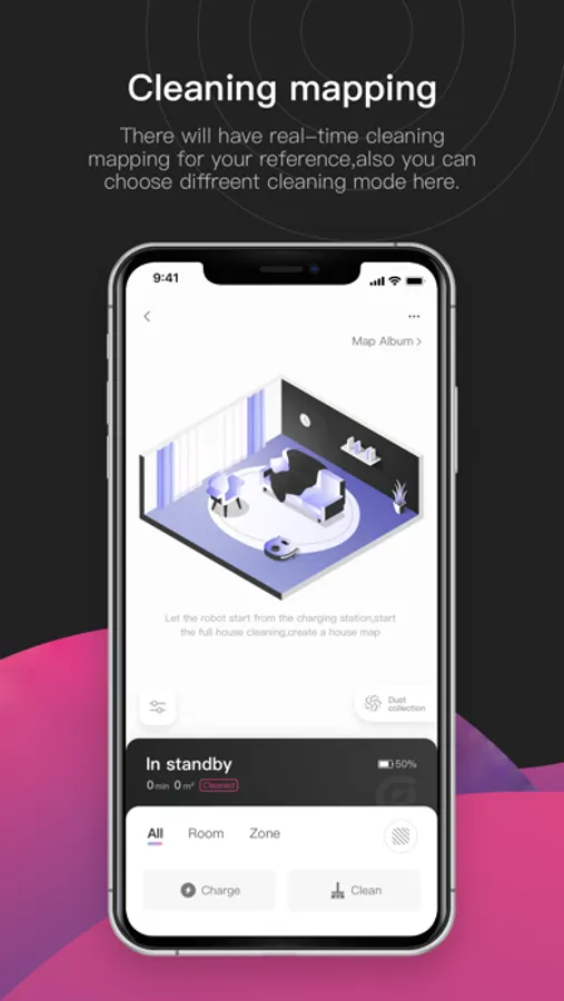 obode robot app helps you to release your hands from housework. You can control you robot via app to get started, go back to docking station, Scheduling or other controls.