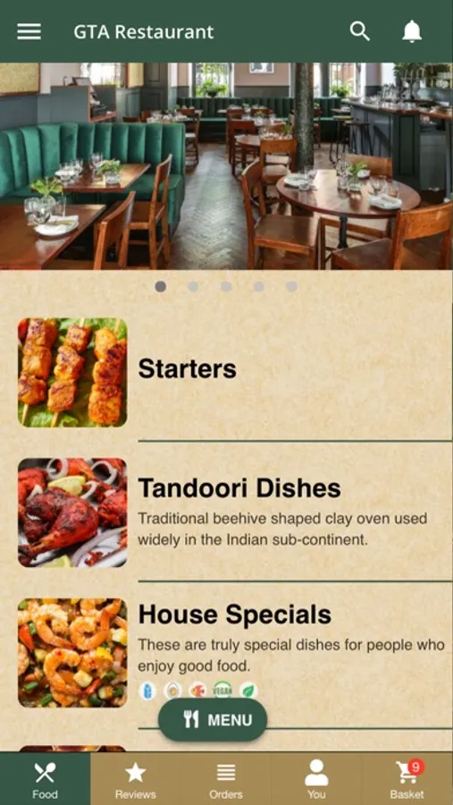 GTA restaurant serves modern British food and Indian. Amongst others dishes, try our amazing lamb dishes, fresh fish, a good choice for vegans and vegetarians.