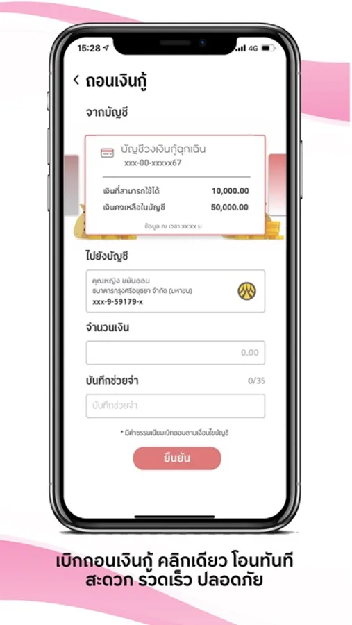 - ถอนเงินกู้ฉุกเฉินเข้าบัญชีกรุงศรี