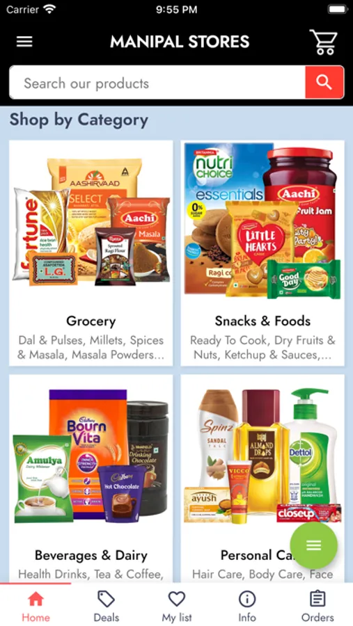 Groceries, Pulses, Spices & Mixes, Oil & Ghee, Hair Care, Cosmetics, Dental Care, Washing Products, Stationary, and Delicious Ice creams