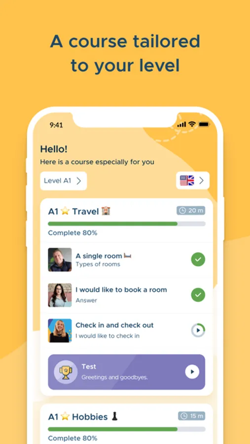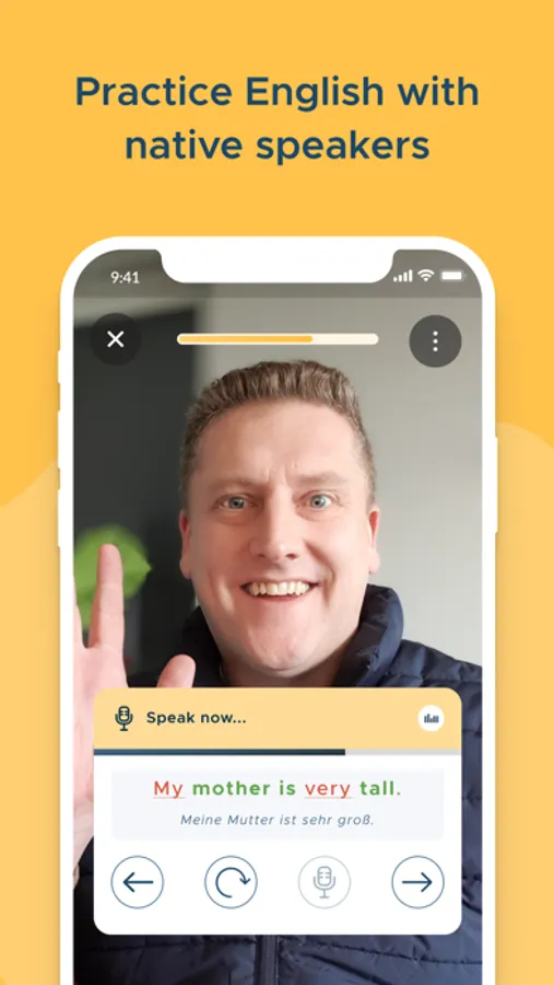 We focus on a natural method of learning English, which is a novelty in mobile apps. Instead of swotting up on English words, grammar rules, or reading flashcards, you learn by listening and repeating in English. And if you make a mistake - BeeSpeaker will let you know that you need to try again. It's an extremely interesting, fun and effective method for you to learn English, which eliminates stress and allows you to focus on what is most important - talking freely in a foreign language. The teachers in our app always speak English, thanks to which you start to break it up and just speak!