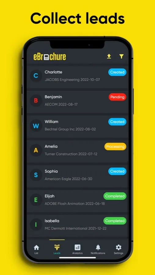 Every brochure that you create using our application is a lead magnet, you can enable lead form to access the brochure and get the leads from all of your brochure shares. Fields in lead form are fully customisable, you can enable and disable the feeds in lead form on the fly. All collected leads can be processed directly from the app as well, app allows you to change the states of the leads and also allows you to export the leads