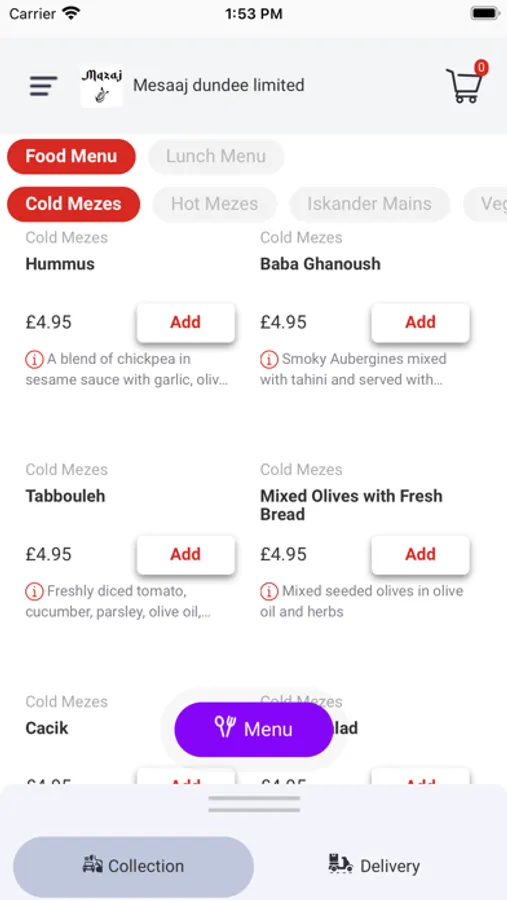 Our meats are all Halal and freshly cooked on the charcoal grill in front of you, filling the