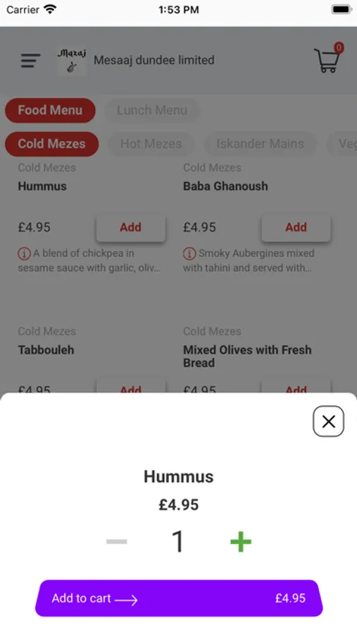 restaurant with rich and enticing aromas from the Middle East. Choose from any of our dishes
