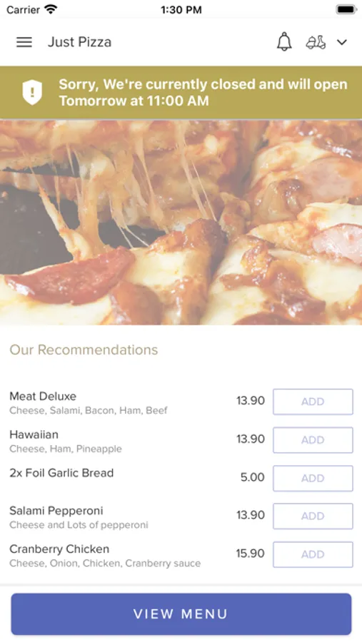Thank you for visiting Just Pizza in Waiuku. We hope you enjoy our online ordering app and your food.