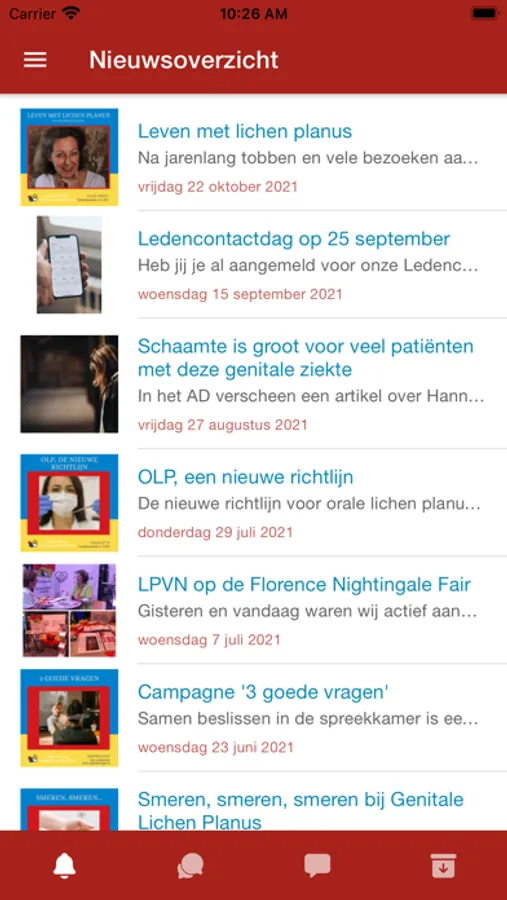 De officiële app van de Lichen Planus Vereniging Nederland. Blijf eenvoudig op de hoogte van het laatste nieuws. De app geeft direct en ongecompliceerd inzicht in jouw eigen gegevens. Download en lees snel een artikel uit onze uitgebreide bibliotheek.