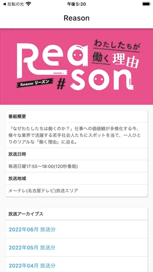 株式会社トップ提供【Reason ~わたしたちが働く理由~】放送動画視聴アプリ