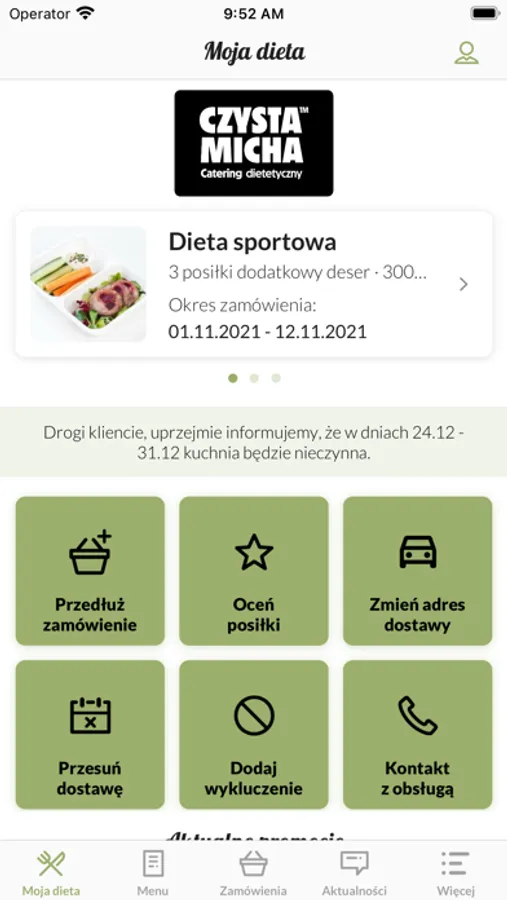 do zarządzania wykupioną dietą oraz do komunikacji z cateringiem. Dzięki aplikacji
