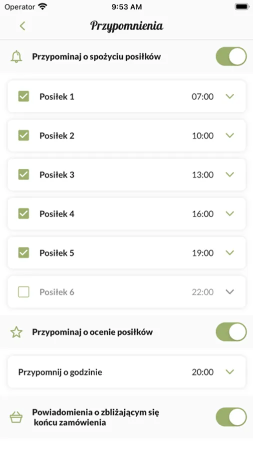 - przypomnienia o spożyciu posiłków