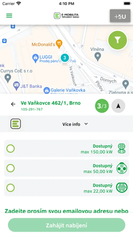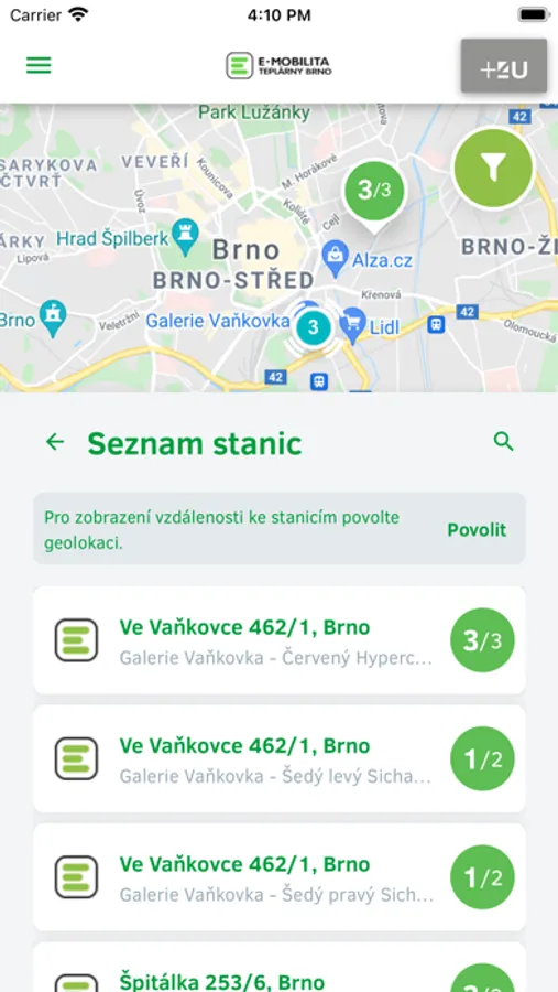 Díky naší aplikaci můžete dobíjet pohodlně svůj elektromobil v síti dobíjecích stanic E-mobilita Teplárny Brno a to na lukrativních lokalitách po celém Brně. Stáhněte si naši aplikaci a již nebudete potřebovat k dobíjení nic víc. Kromě bezproblémového dobíjení zjistíte pomocí aplikace také polohu stanic, jejich obsazenost a celou historii vašeho dobíjení.