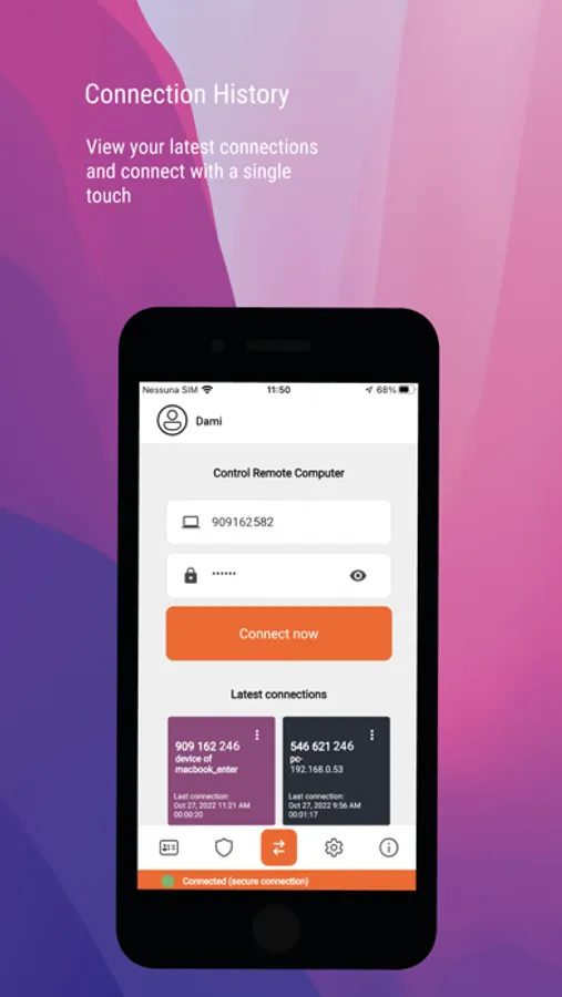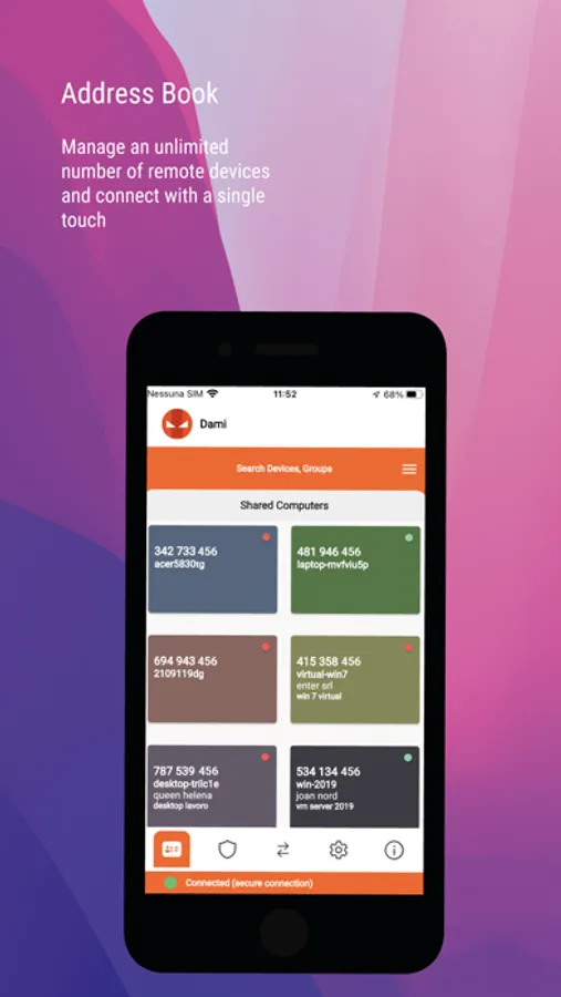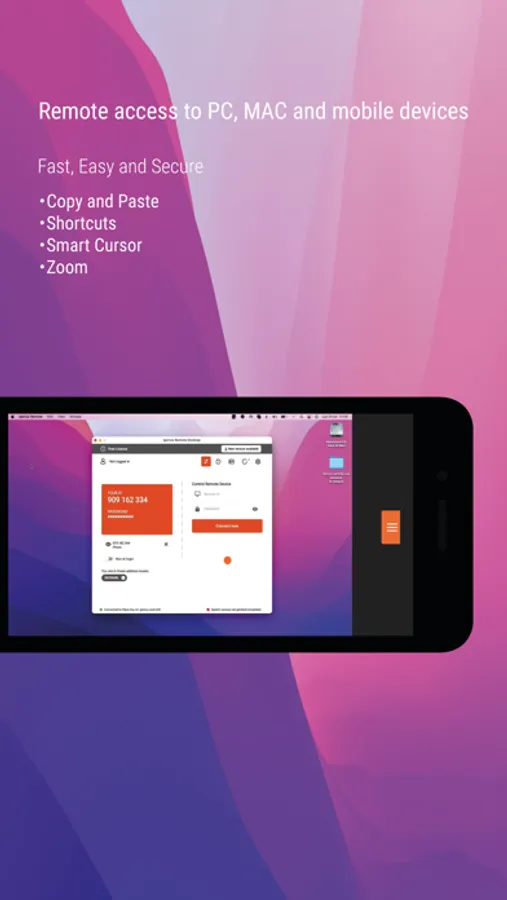 The Iperius Remote apps allow remote desktop in both directions. You can remotely control an iPhone or iPad. Controlling your phone remotely is super easy, and you can even take screenshots or record your screen by saving a video file. The App also allows you to connect in remote desktop to Windows or MAC.