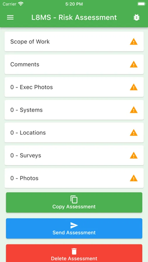 The risk assessment survey assistant app for mobile devices. Site survey information for plant (tanks, calorifiers, etc.) and asset (outlet locations) registers including photographs can now be captured using our RAS Mobile app. The new mobile app only needs access to the internet to download standard surveys and text and send the assessment back to L8MS Risk (i.e., It runs offline).