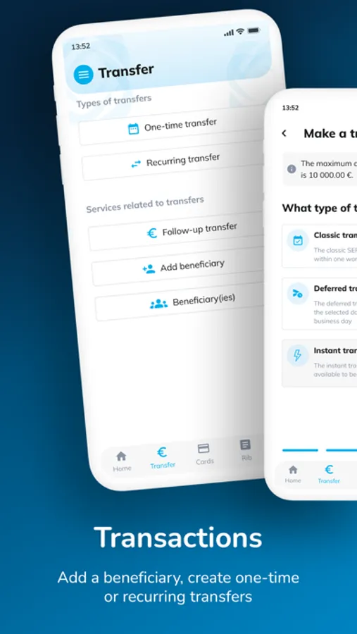 - Use Instant Payment (or instant transfer) up to €100,000 per transaction. Transfers are credited in less than 10 seconds anywhere in Europe, even at weekends and on public holidays