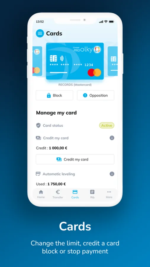 - Take advantage of the separation between the card account and the current account for a more precise follow-up and offer card accounts to your employees