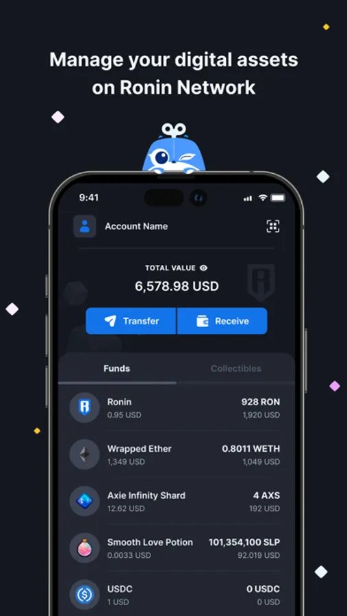 This application allows users to see and transfer the assets they own on the Ronin Network.