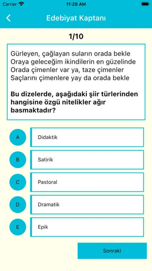 Bu uygulama ile edebiyatı A'dan Z'ye öğrenmek çok kolay. Kitaplarla boğuşmaktansa telefonunuza tamamen ücretsiz olarak indirebileceğiniz bu uygulama ile başarıyı yakalayabilirsiniz. Basit arayüzü ile ders notları, kodlamalar, yazarlar, eserler ve sürpriz diğer özellikler tek bir uygulamada. Öğretmenlerimiz öğrencileriyle bu uygulamayı paylaşmayı unutmasın, eminiz ki çok faydalı olacaktır.