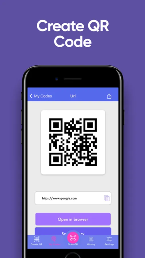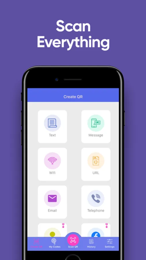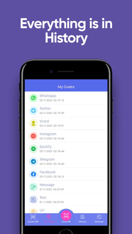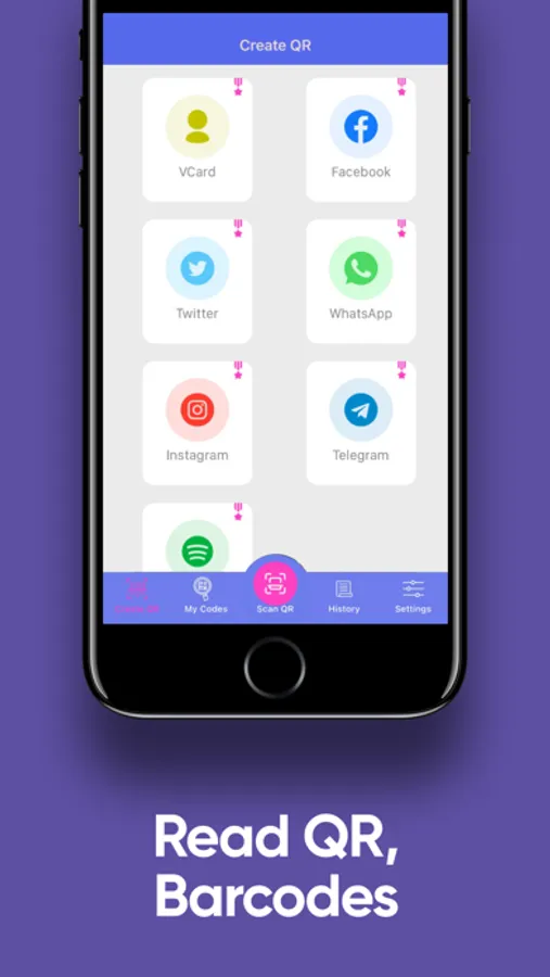 - Create personal e-mail, Facebook, Viber, Instagram or Twitter QR