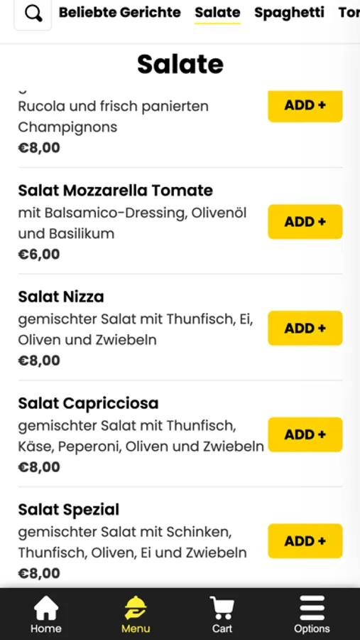 - Durchsuchen Sie die Speisekarte des Restaurants und sehen Sie sich alle anpassbaren Optionen im Voraus an