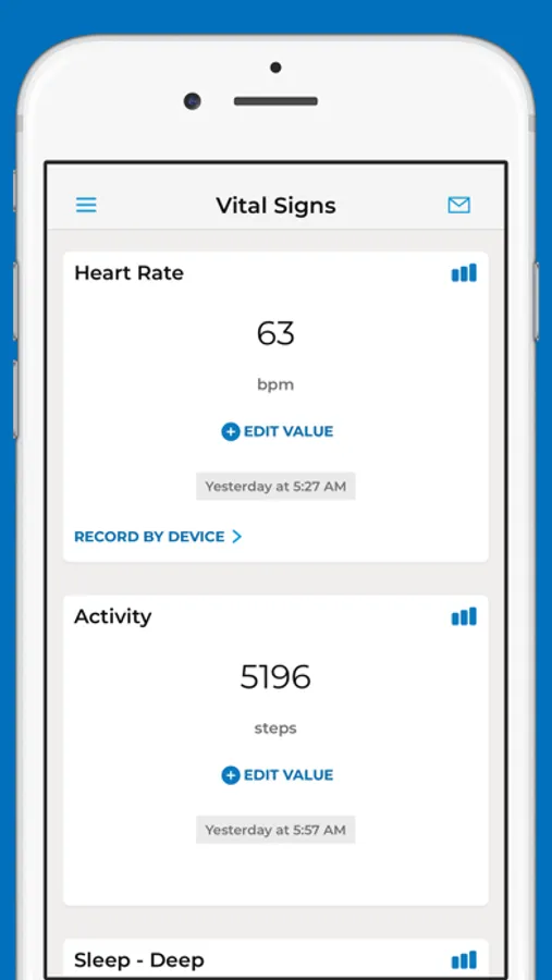 The app uses Apple Health and Direct Bluetooth Connection to retrieve vital signs.