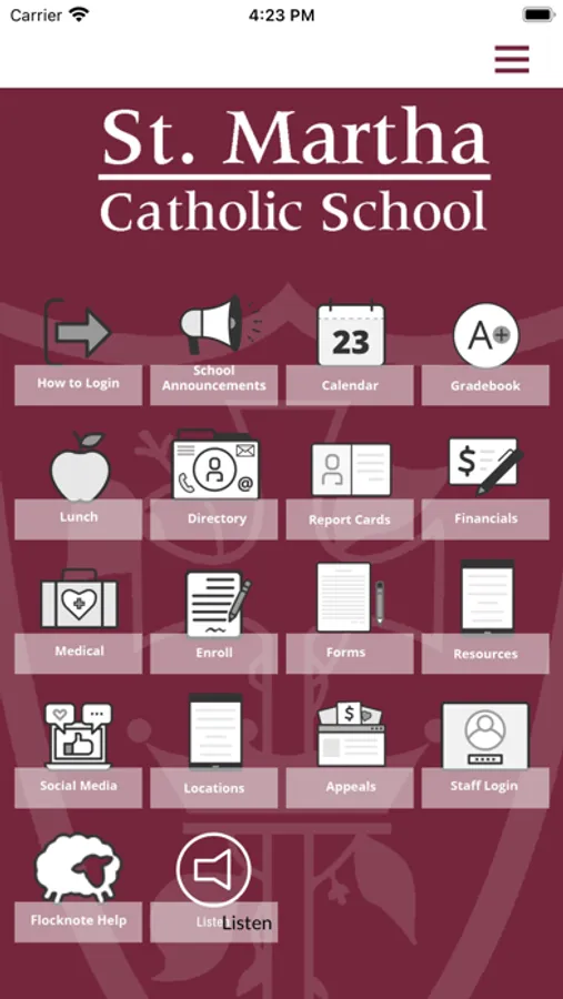 Welcome to the Family App for St. Martha Catholic School in beautiful Kingwood, TX! This app is a one-stop-shop for our school community, with any time, anywhere access to all the tools parents need to stay connected and engaged. The App includes the same school information found in the Family Portal including Announcements, Student Grades, Lunch Ordering, Family Accounting, and much more! Easy to use and it's free for our parents!