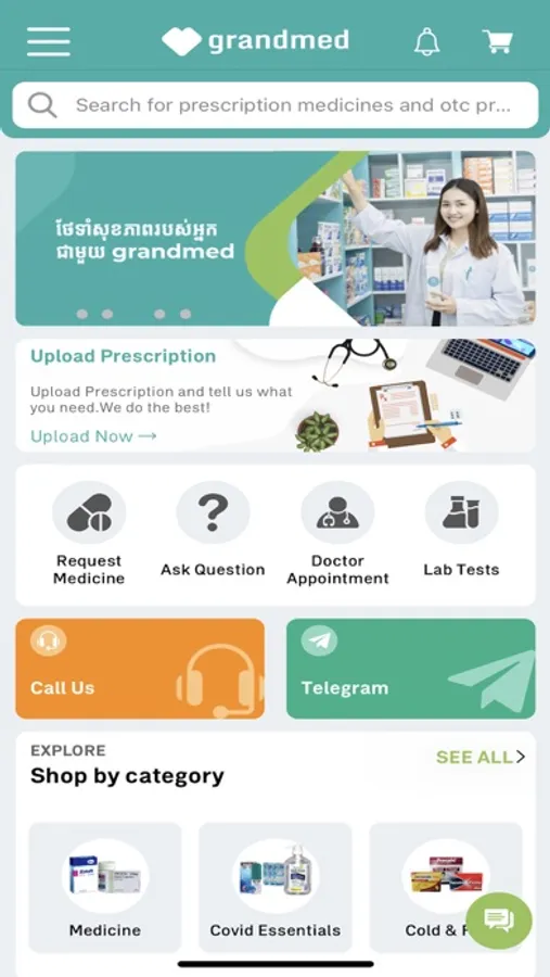 grandmed servicing Online Doctor Consultation, Online Medicine Delivery & Lab packages grandmed is Cambodia’s top online doctor consultation app that offers complete telemedicine solutions along with online medicine delivery and lab packages.