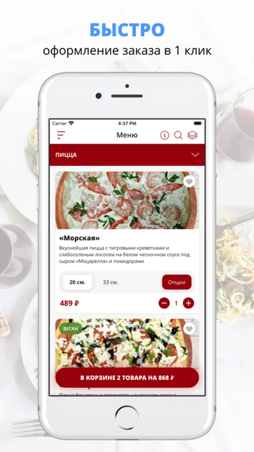 удобная корзина и быстрое оформление заказа,