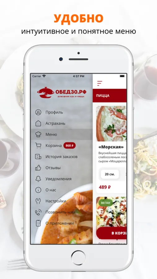 Приложение Обед30.рф — это удобный способ заказа еды домой или в офис! Мы готовим наши блюда из качественных свежих ингредиентов и доставляем еду быстро и бережно.