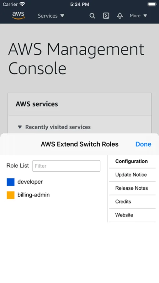 Safari extension to allow you to quickly and easily switch AWS IAM role when using the AWS Console. The built-in role history in the AWS Console only stores the last 5 roles however many users find they have many more roles that they need regular access to.