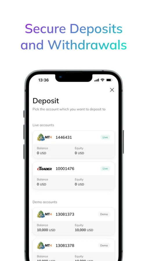 Please note that you can fund or withdraw from your MetaTrader and cTrader accounts but you’ll still have to log in to the trading platform in order to place trades and view existing positions and orders.
