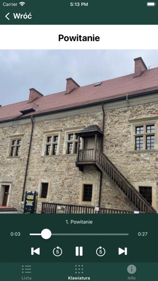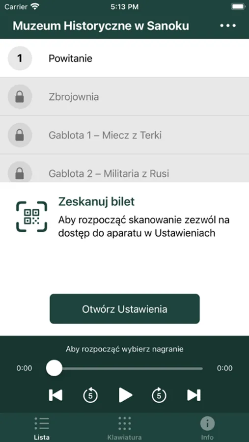 Audioprzewodnik przeprowadzi nas przez wystawy muzealne zawierające eksponaty z okresów starożytności i średniowiecza, przez sztukę sakralną, aż do malarstwa współczesnego, w tym zadziwiające dzieła Zdzisława Beksińskiego.