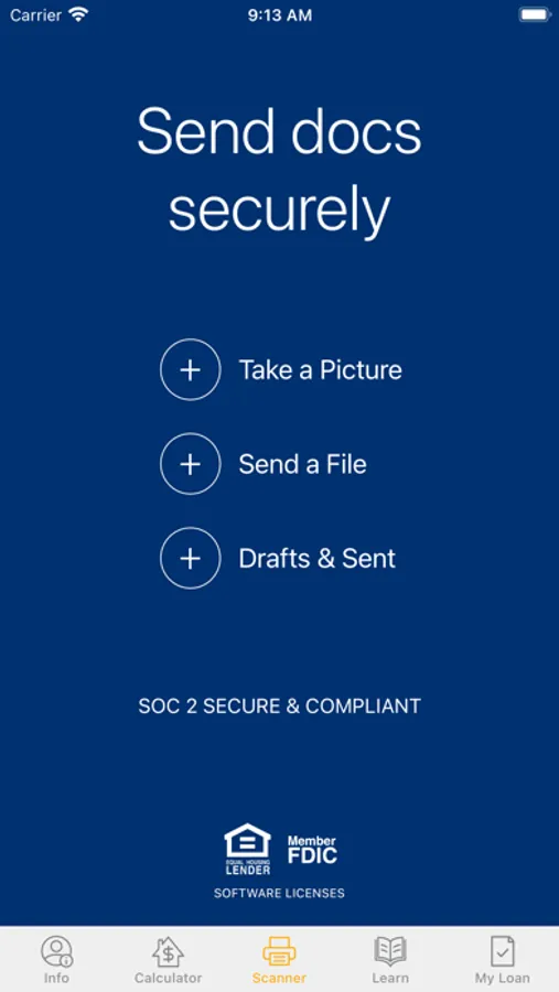 •An easy and secure Document Scan Tool will allow you touse your smartphone camera to scan in required documents on your phone and upload them quickly to expedite the loan approval process.
