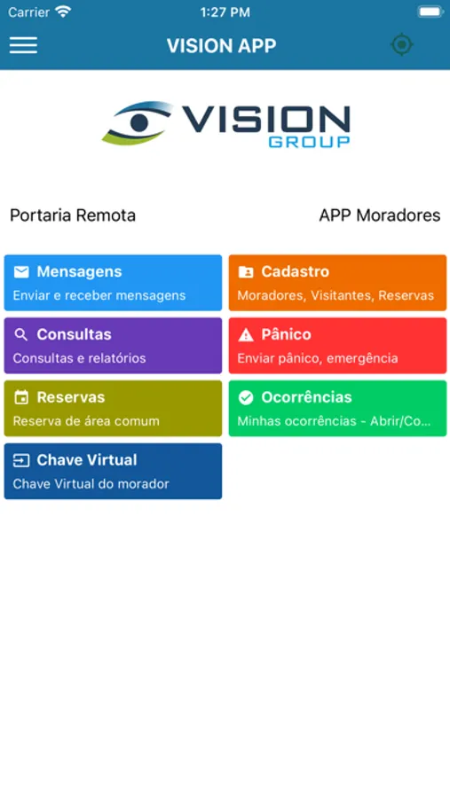 Possibilidade de convidar os amigos, visualizar as câmeras, abrir as portas e ser notificado quando seus amigos chegarem no Condomínio.