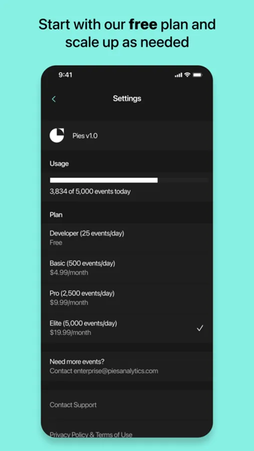 Add your first app for free and enjoy real time app analytics from Pies.