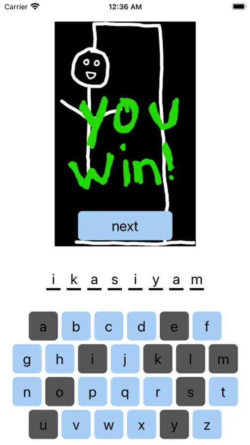 3) Tap on one of the character from the screen keyboard to guess the word.