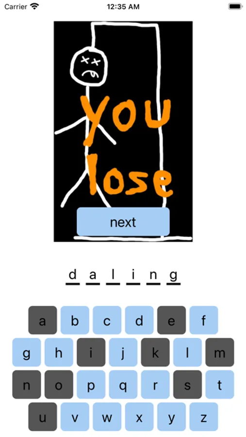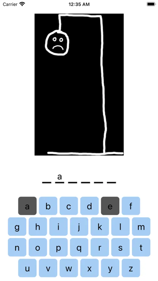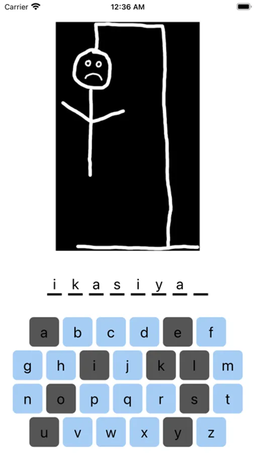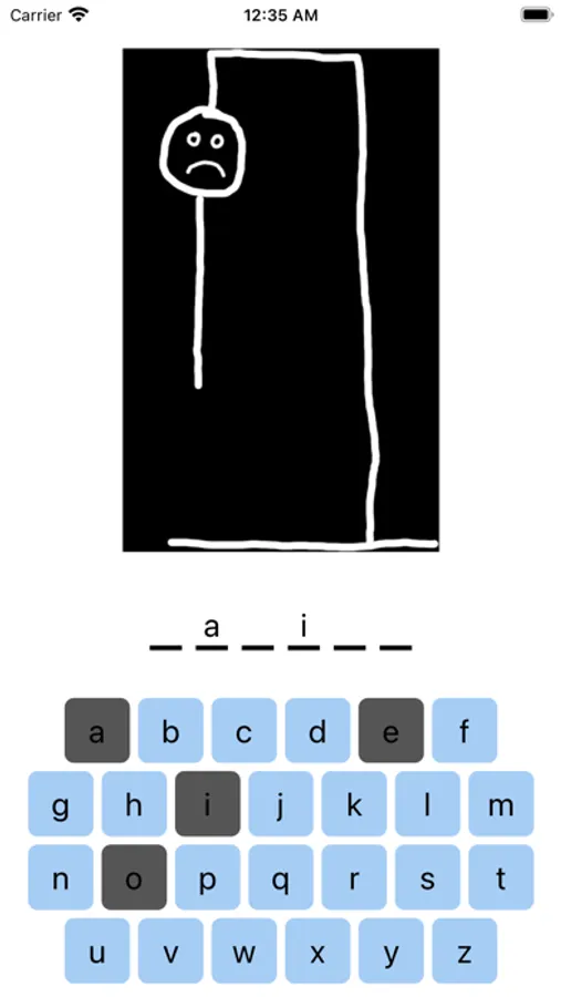 5) If you guess wrongly, the blank underlines will not be filled-up and then the hangman image will be updated.