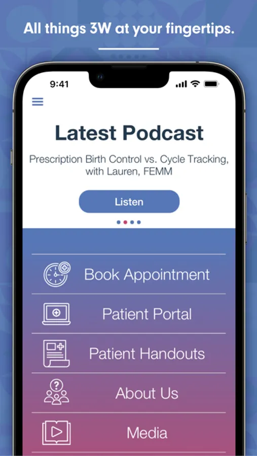 Request appointments, access your patient portal, consult our library of educational handouts, and much more with the 3W Medical for Women app designed just for our patients!