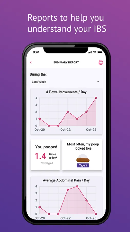 MyIBS app is designed to help you understand your IBS better so you can play an active role in your symptom management, but it does not provide medical advice. Use this app to help you have more detailed discussions with your doctor. Always consult with your doctor directly before making any changes to your diet or health.