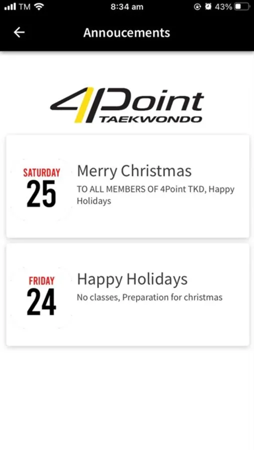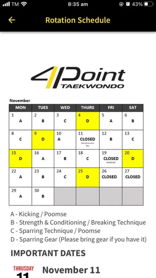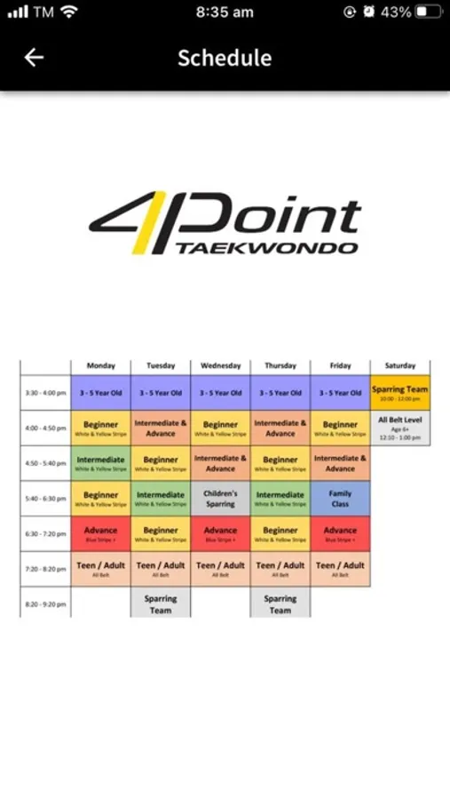 Receive notifications and announcements from 4Point Taekwondo. Current students can view our class schedules, and rotation schedules and get important announcements.
