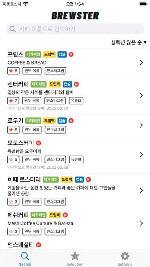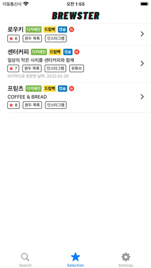 - 나만의 셀렉션을 만들어서 원하는 카페만 모아볼 수 있습니다.