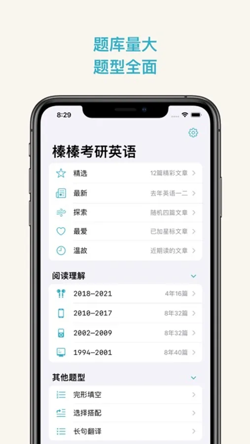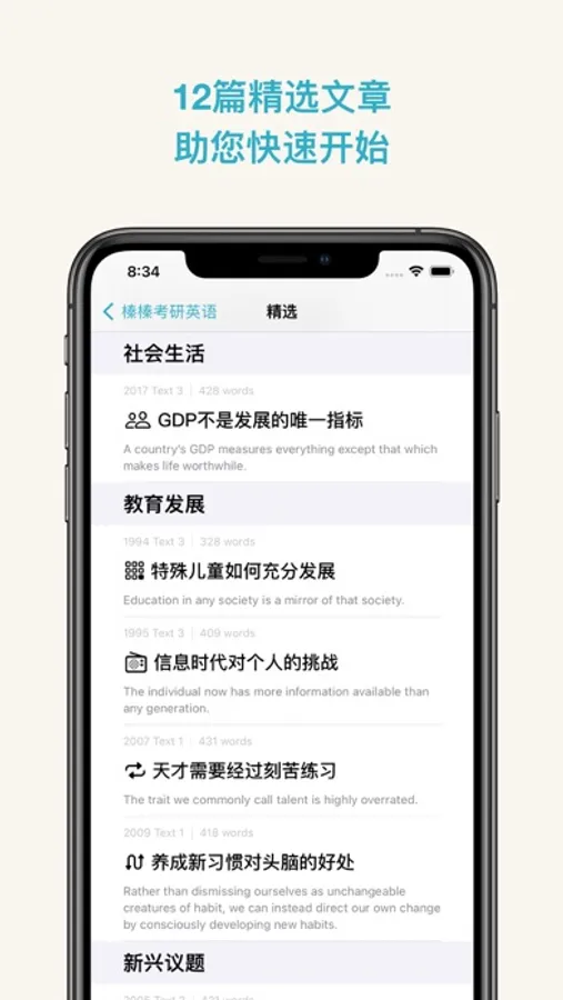「榛榛」应用包含自1994年至2021年各年考研英语真题除作文外全部内容(新增2022年英语一和英语二两套14篇文章),包括完形填空(Use of English)、阅读理解(Part A)、段落搭配(Part B)和长句翻译(Part C),共28年197篇,部分内容有解析,助您高效备考。这些文章选自英文世界主流报刊,除可用于考研英语备考,真题阅读内容本身也包罗万象,涵盖经济学、教育学、传播学、历史学、法律、艺术、自然科学、前沿技术等诸多领域。不少篇目还与当年时事密切相关。对于往日专注于所学专业的同学来说,阅读这些考研英语真题文章也许可稍起扩大视野的功用。在做真题之余,也可对阅读内容本身稍加关注。