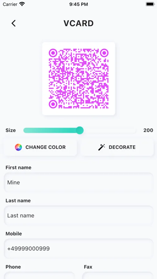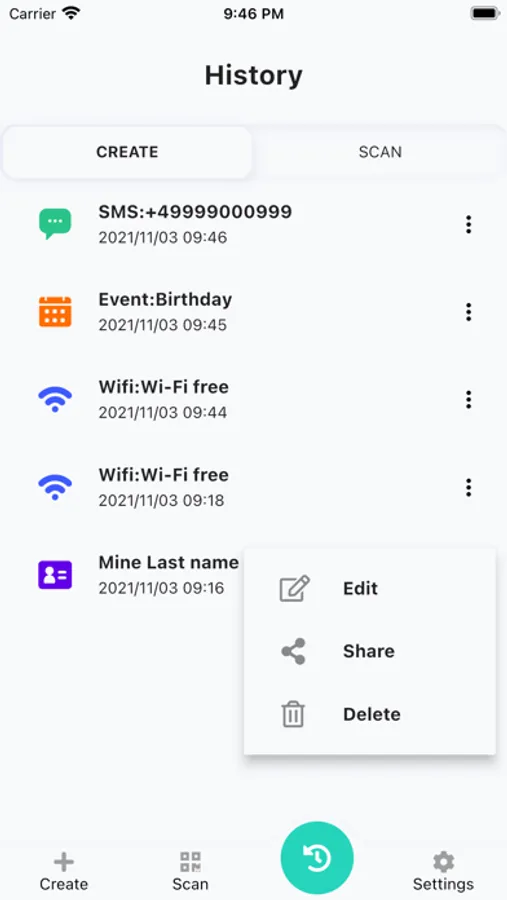 - Generate QR Code for Website URL, Contacts, text, Wifi, Business card, SMS