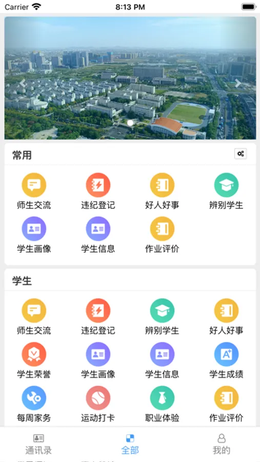 主要围绕与教学相关的管理数据,每个任课老师可以查询各自己任课的教学班学生名单,可以了解到教学班学生的组成情况,可以了解本教学班阶段性考试成绩,可了解本班在年级的成绩排名情况等;同时教师端也有相应的办公功能模块,方便教师处理日常事务