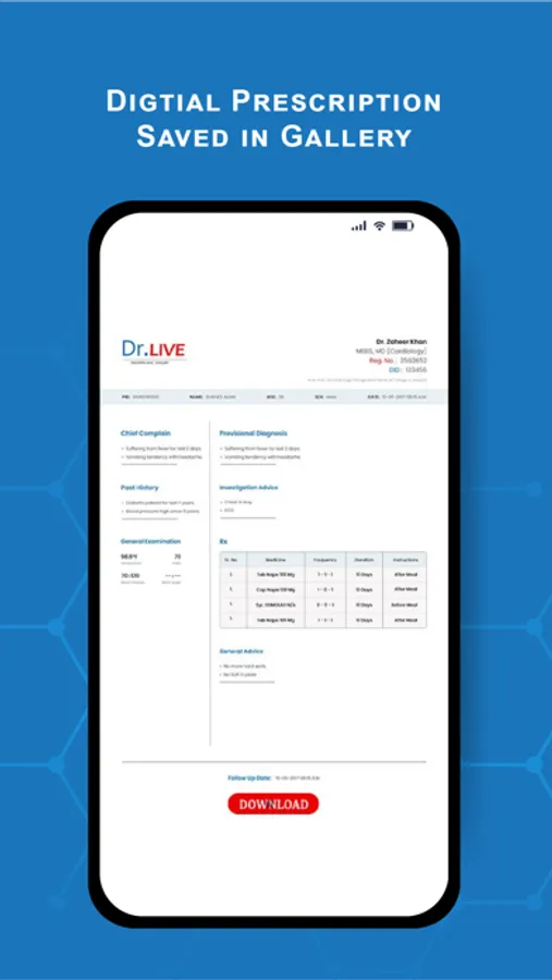 Share reports & chat with the Doctor also, you’ll be prescribed with a digital prescription that you can save simply in your photo gallery for future reference.