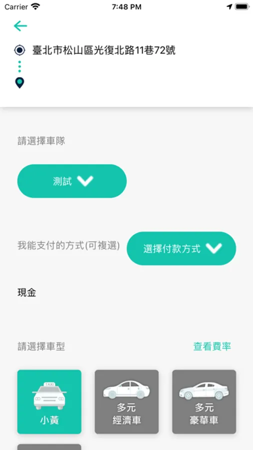 輸入上下車點,自動計算及車資並可自行議價叫車