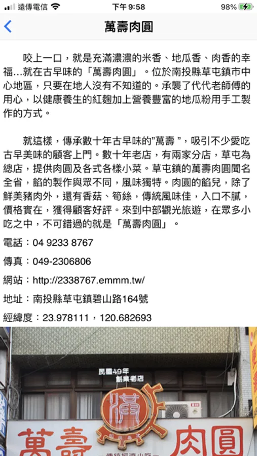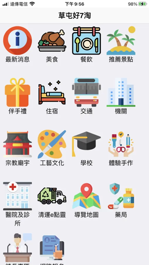 提供草屯導覽相關資訊,包含「最新消息」、「推薦景點」、「美食」、「伴手禮」、「住宿」、「導覽地圖」等主題。提供遊客草屯觀光導覽所需相關資訊,還可以透過最新訊息獲得目前草屯鎮最新活動消息。