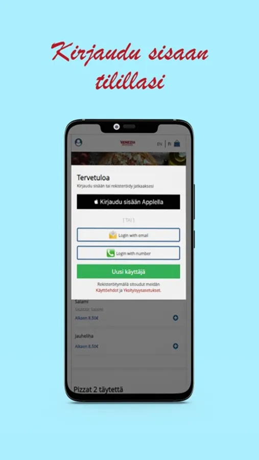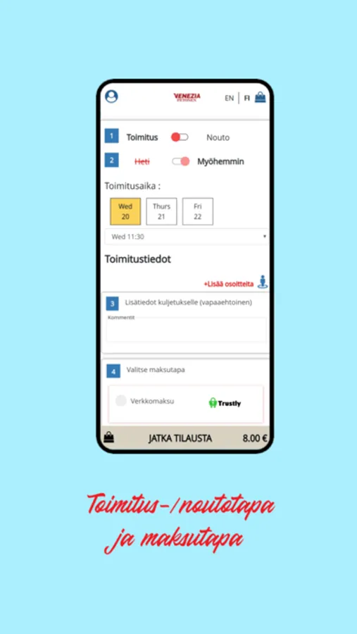 Sovelluksessa sinulla on mahdollisuus valita erilaiset maksutavat. Meillä on käytössä: