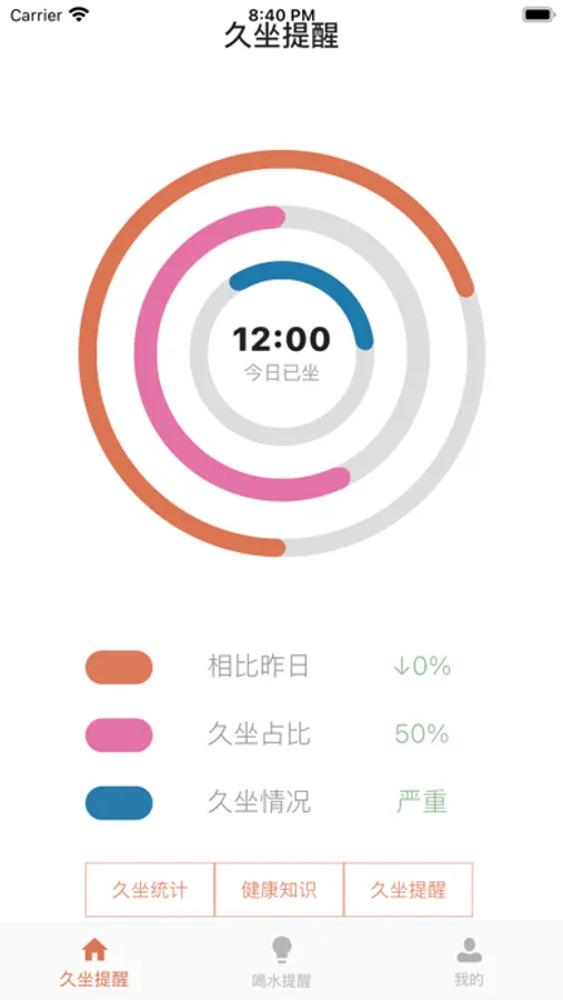 久坐提醒是针对长期久坐的上班族和学生研发的健康提醒软件。帮助你在繁忙的工作和学习时能适当的注意久坐时间和补水次数。